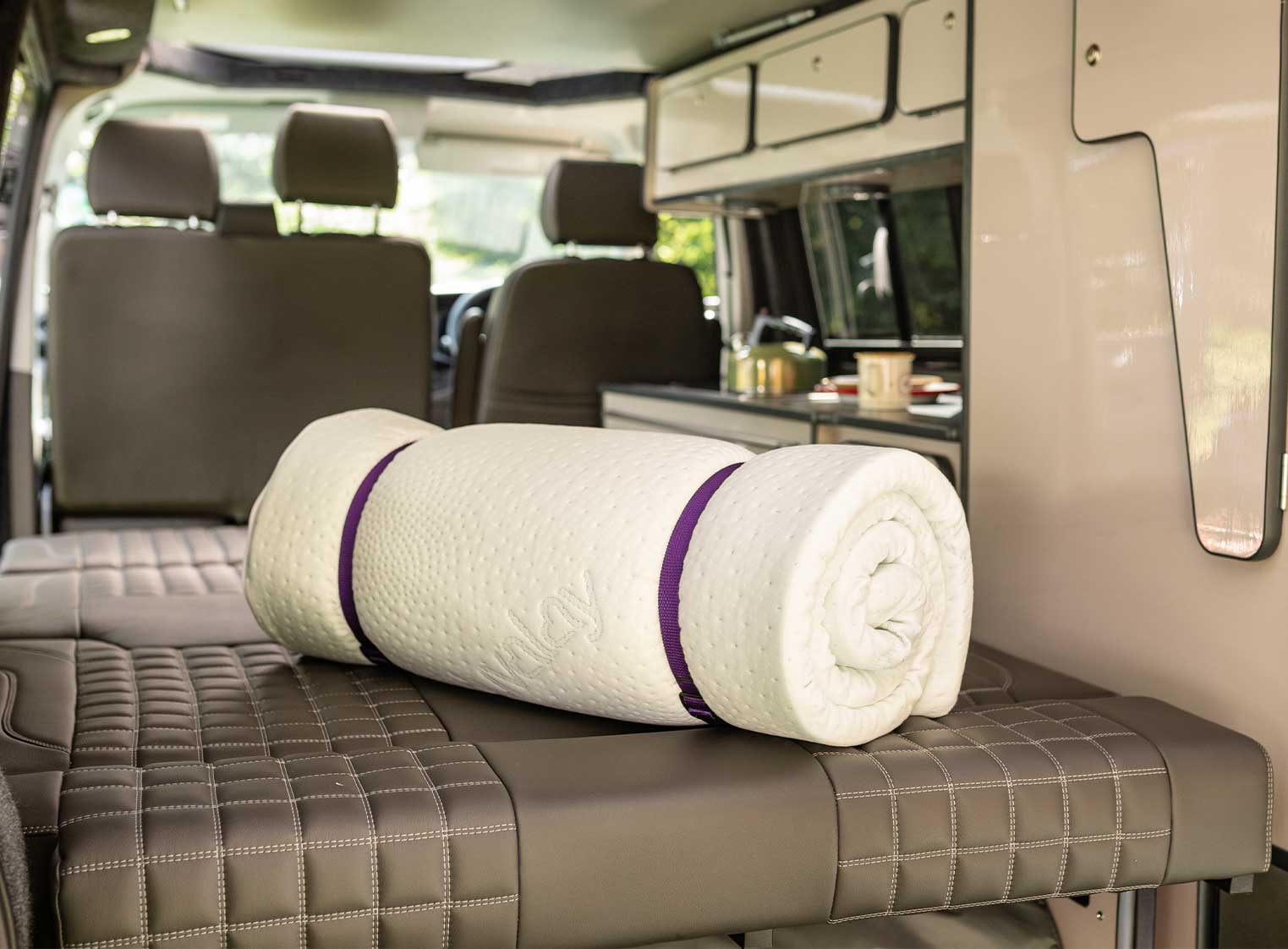 Unsere Duvalay VW Campervan Topper verwandeln jedes unbequeme VW Campervan Rock and Roll Bett im Handumdrehen. Mit ihrem platzsparenden, kompakten Design und der Möglichkeit, sie schnell auszurollen, sind diese Topper perfekt für eine großartige Nachtruhe in Ihrem Volkswagen Wohnmobil.